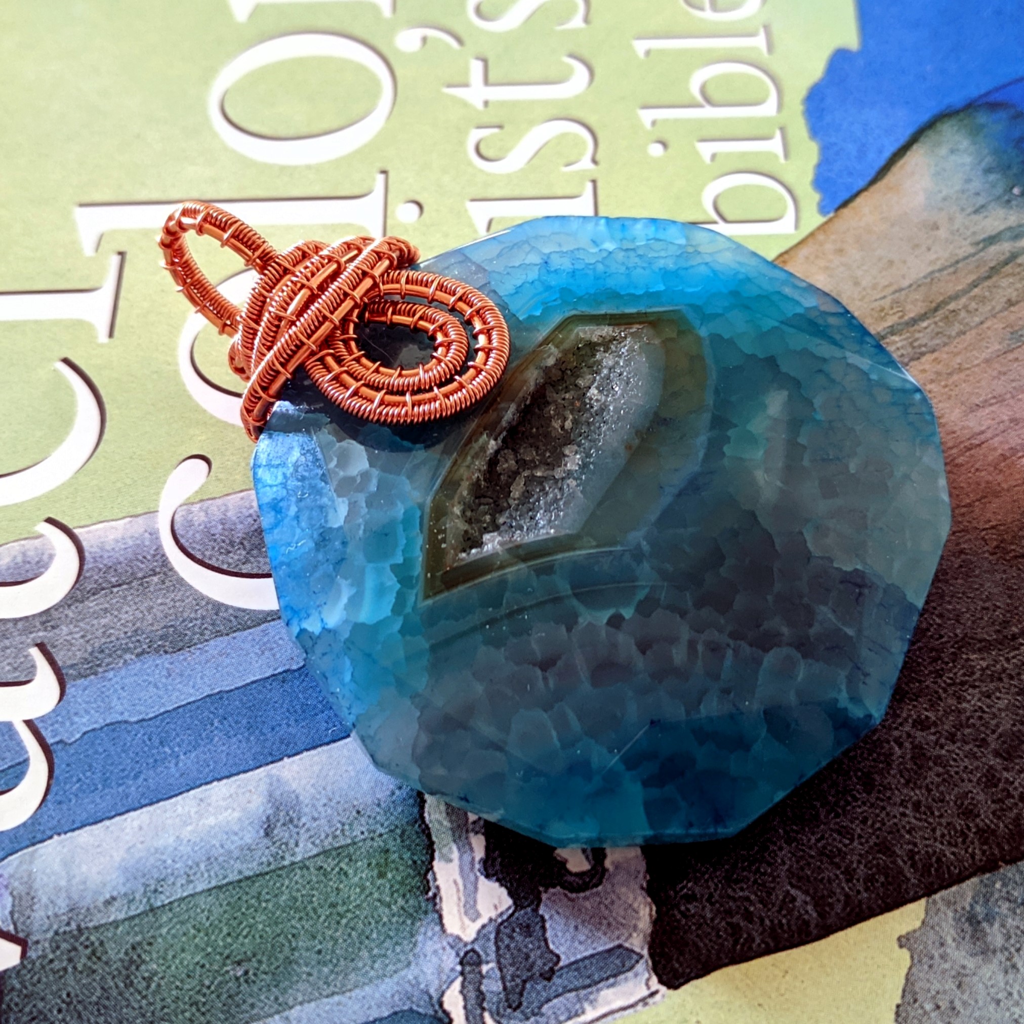 Înainte de a potcovi această agată albastră superbă, am exersat o hăinuță pentru o piatră de râu, superbă și ea – mă rog, are valoare sentimentală, fiind culeasă undeva pe traseul dintre Stuf și Expirat într-o dimineață prăfuită din vara lui 2019.