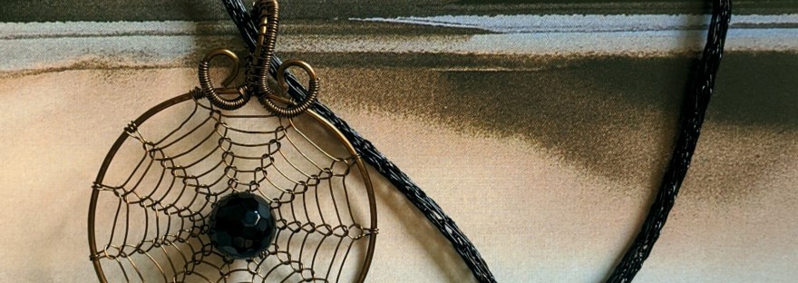 Această agată neagră stă captivă într-o pânză din sârmă de cupru, iar șnurul pandantivului este împletit în tehnica Viking Knit din sârmă de cupru cu finish negru lucios. Încercările prealabile: Rezultatul final: